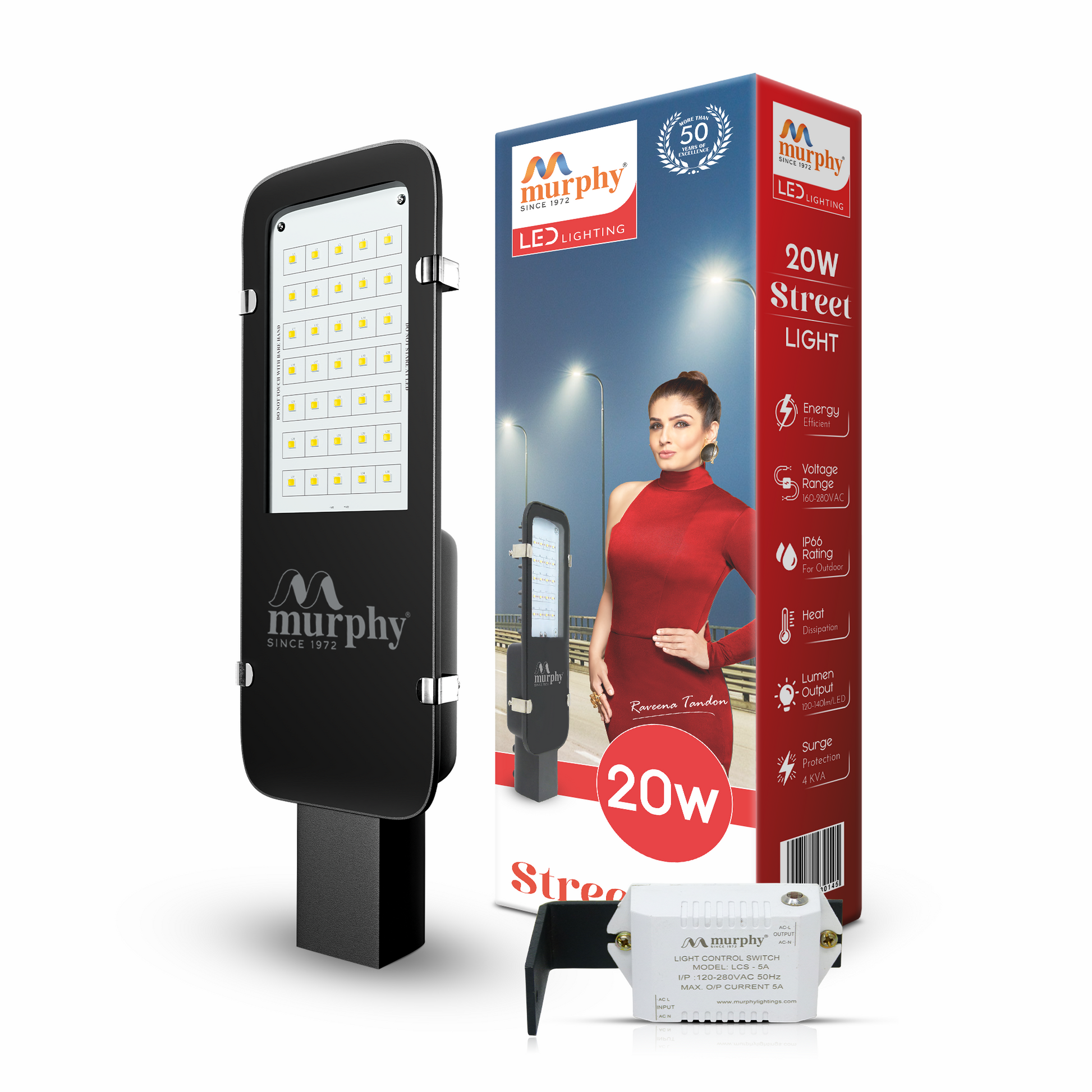 • BUILT IN PHOTOCELL, AUTO ON/OFF - Built in Photocell sensor, Murphy 20w dusk to dawn LED street light will automatically turn on the light at dusk (night) and off at dawn(morning) to save energy and effectively reduces other interferences.