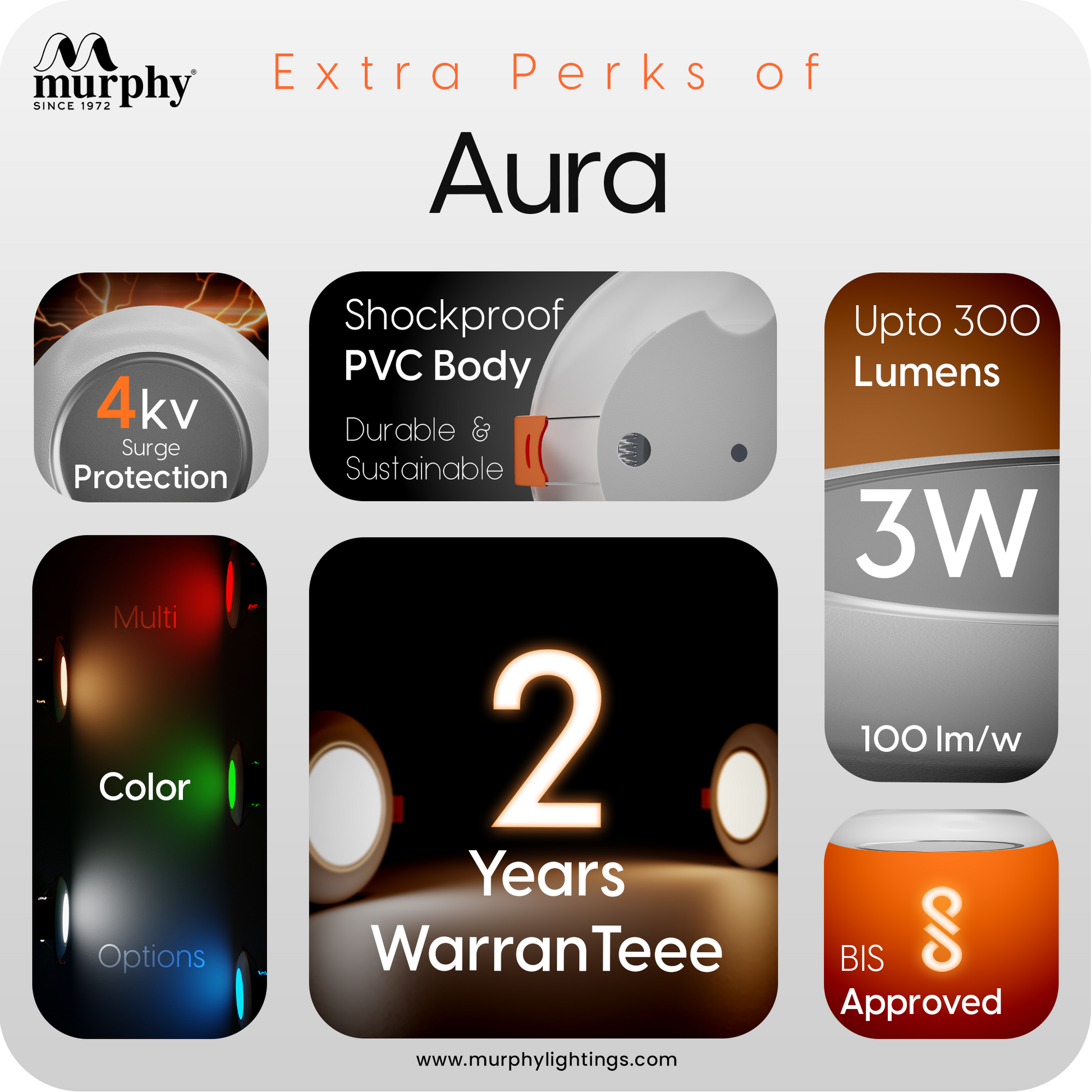 Murphy 3W Aura LED 3-IN-1 Color Changing Down Light : Cool White + Warm White + Natural White