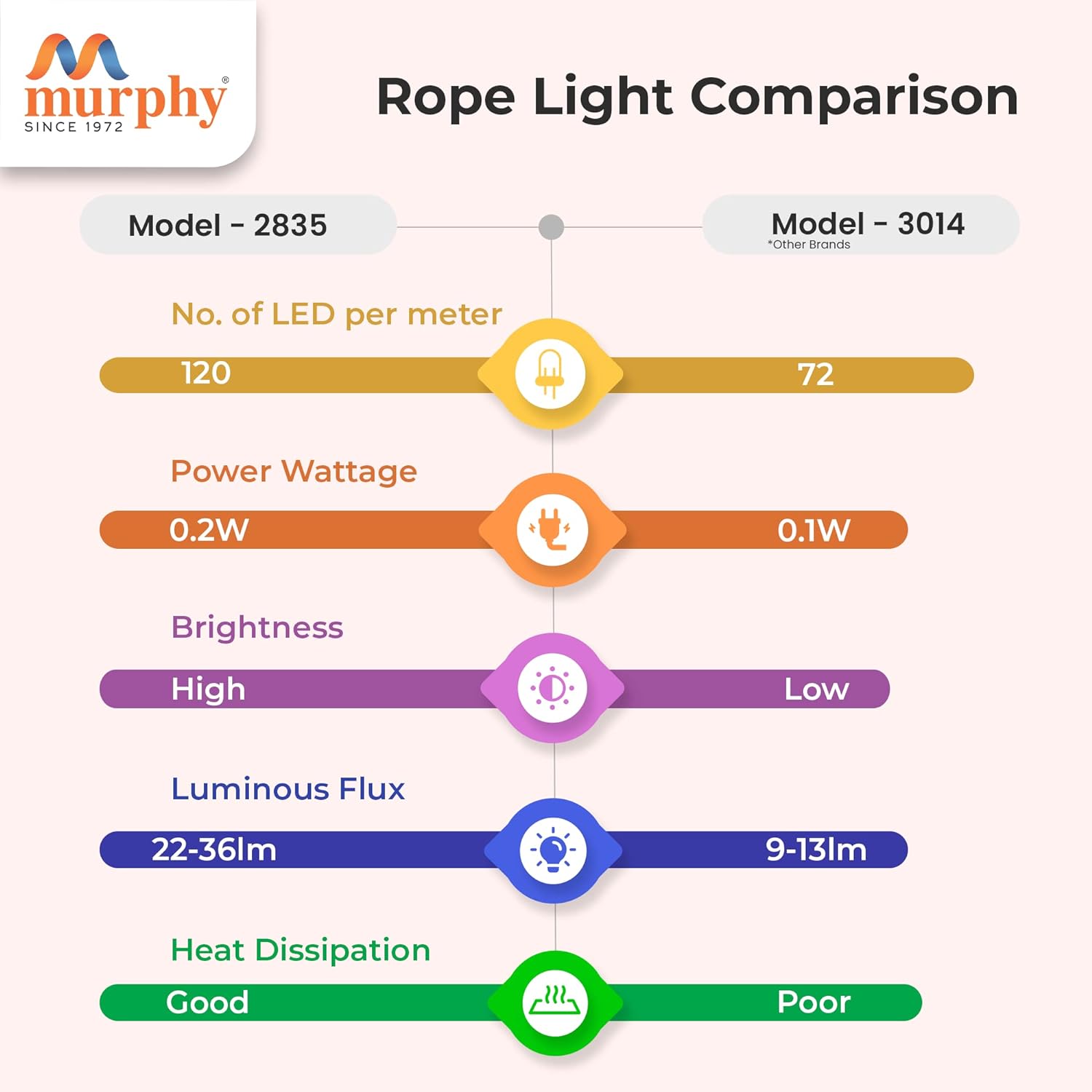 Murphy 2835-120 LED Waterproof Indoor Outdoor Home Deorative, Diwali Lights, Rope Pipe Light, Cove Light (120 Led/Mtr)