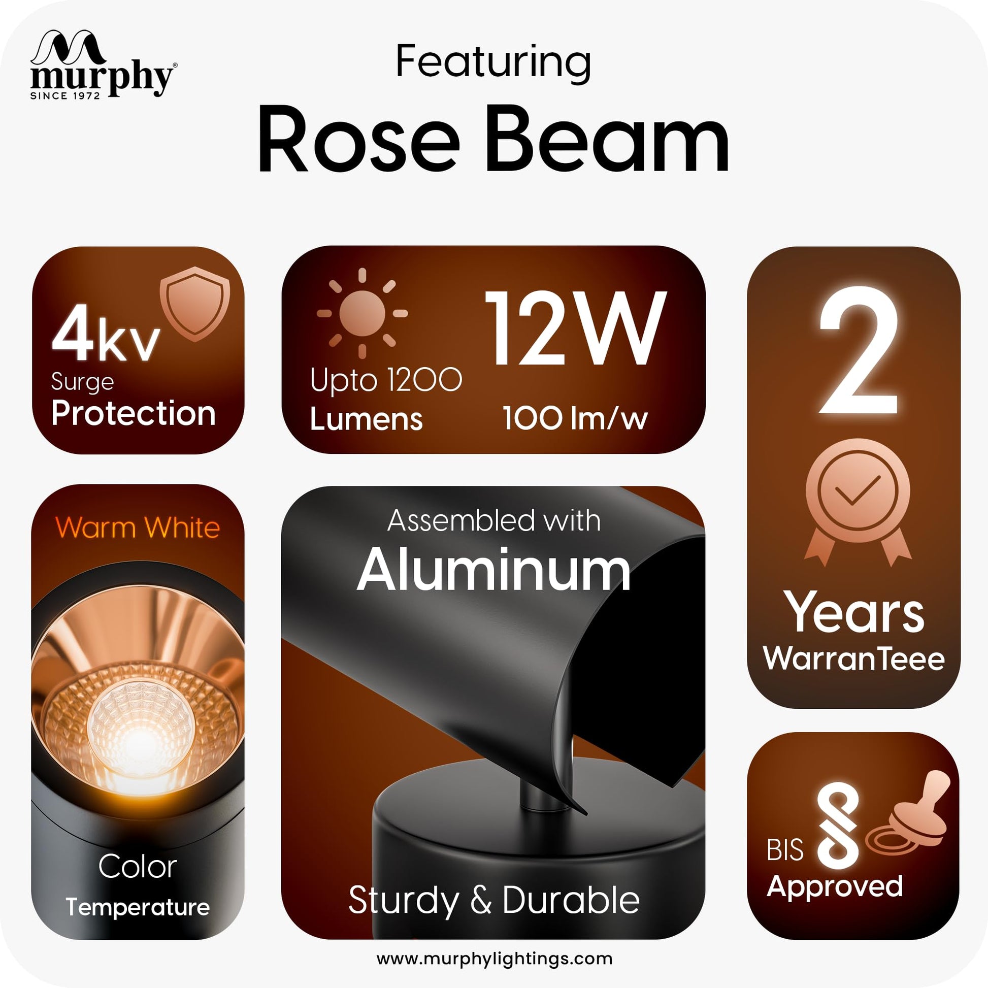 Murphy 12W LED Surface Mount Spot Light for Ceiling Warm White, Aluminium Body, Anti-Glare Design, Indoor Use – Black Rose Gold Finish, 2-Year Warranty