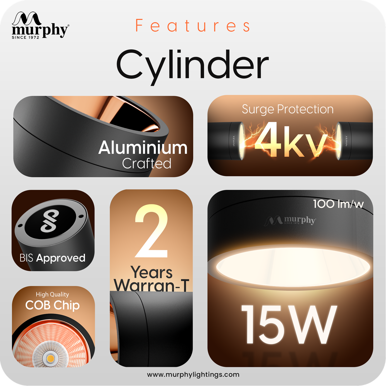 Murphy 15W Cylindrical Surface Mounted COB Spot Downlight