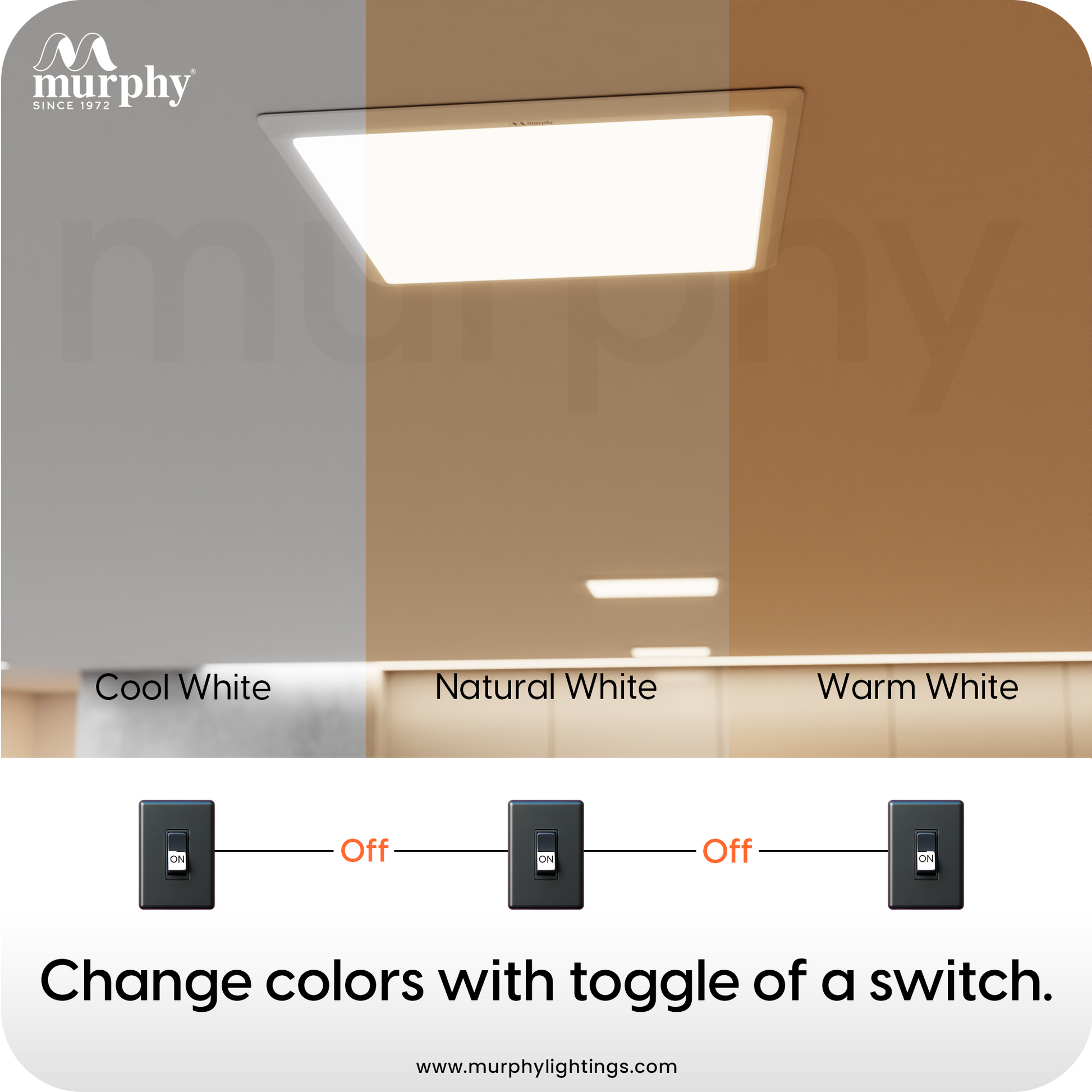 Murphy 15W Trimless 3 Color Changing Square Recess Panel Light