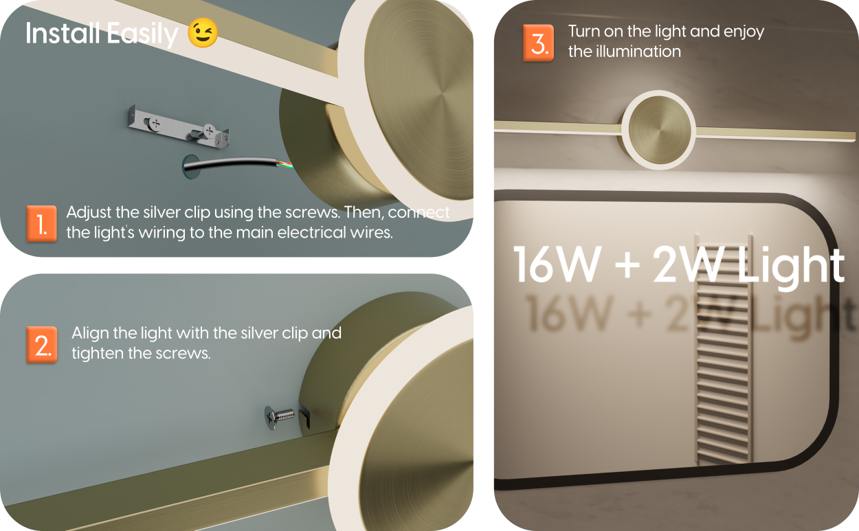 • 💡 Dual Output – 16W + 2W: Get the perfect mix of strong task lighting (16W) and soft ambient glow (2W) for flawless grooming or makeup.