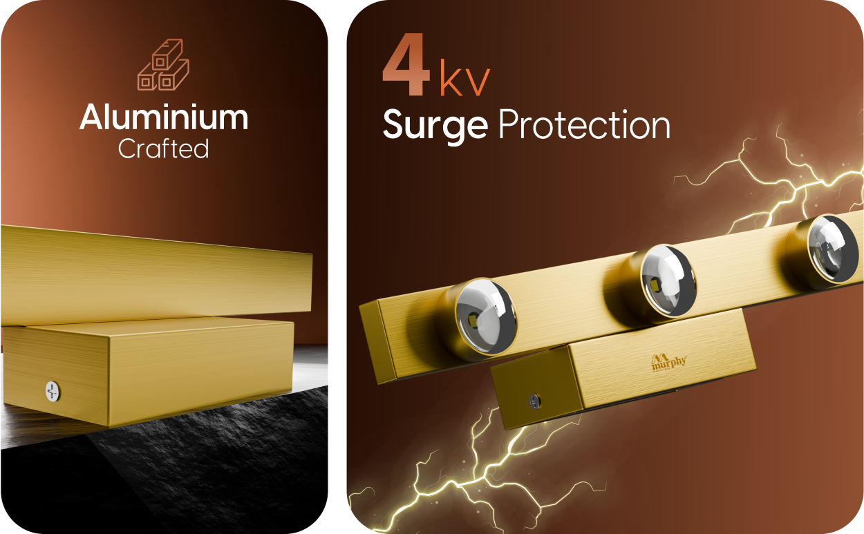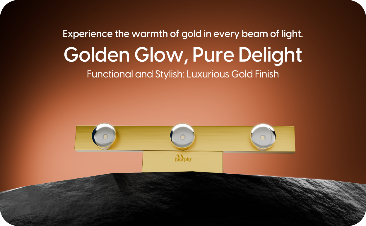 Murphy 3-Glow Goldray|LED Mirror/Vanity Light|- Luxurious Gold Finish|Warm White,