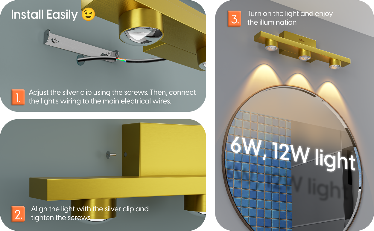 • Multi-Purpose Design: Ideal for bathrooms, vanities, dressing rooms, and accent lighting.