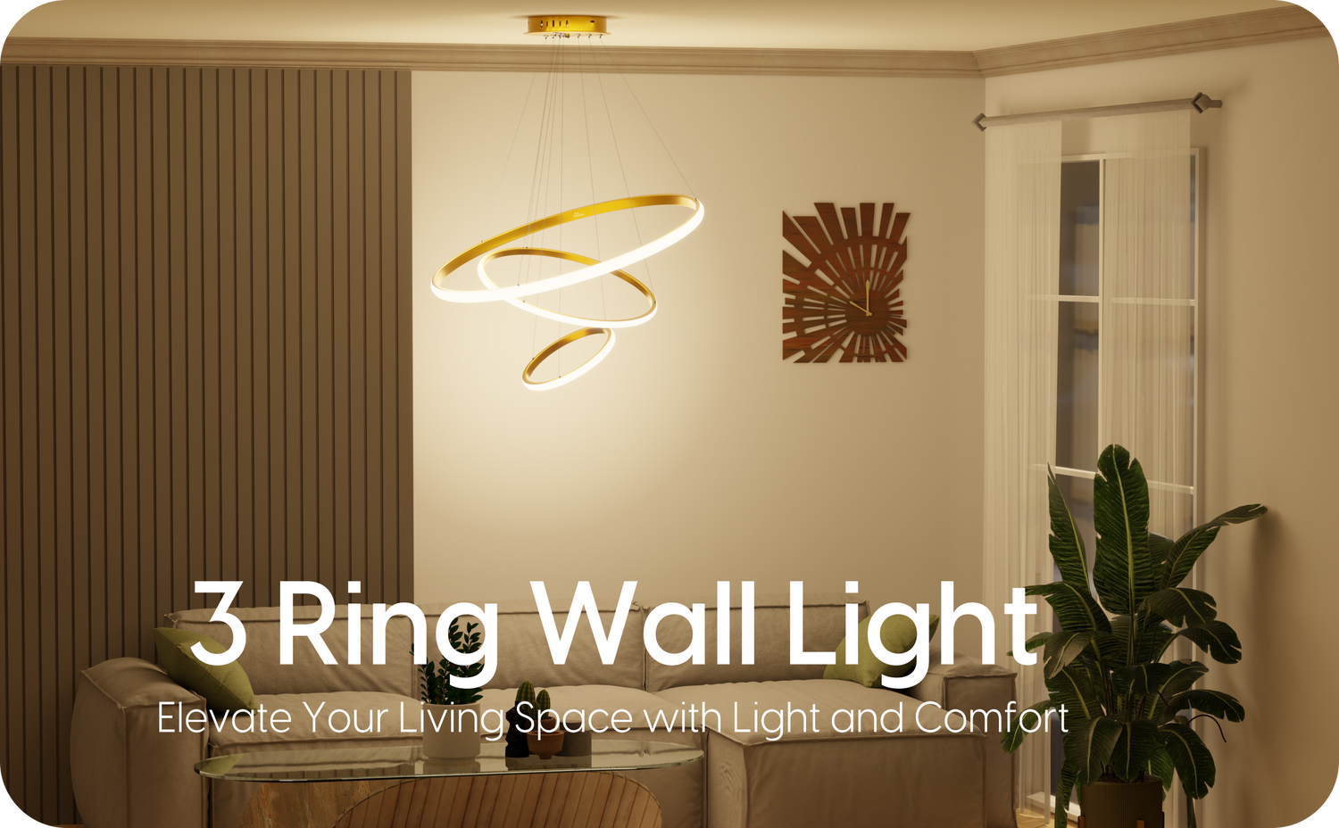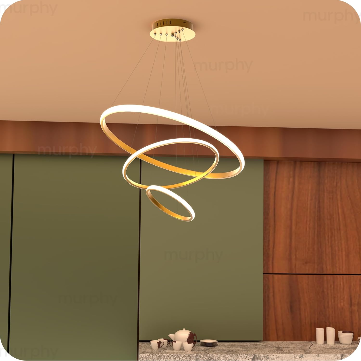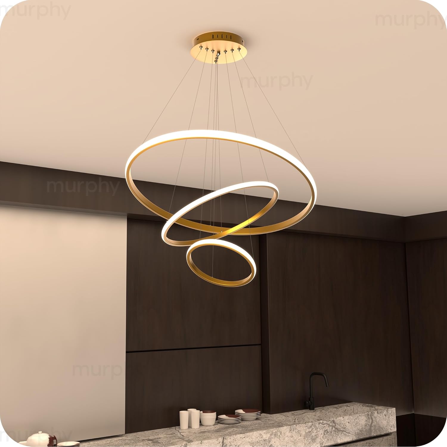• Elegant Modern Design: Featuring a premium 3-ring golden chandelier design perfect for contemporary interiors like living rooms, dining spaces, and entryways.