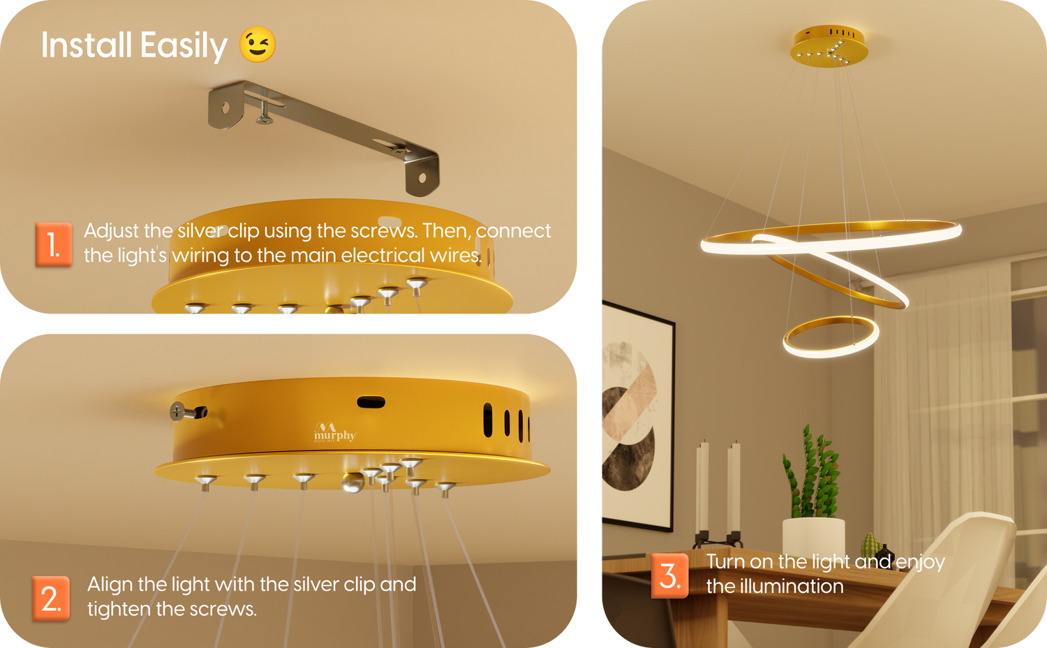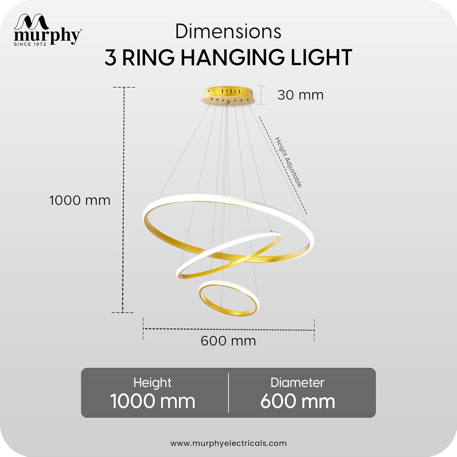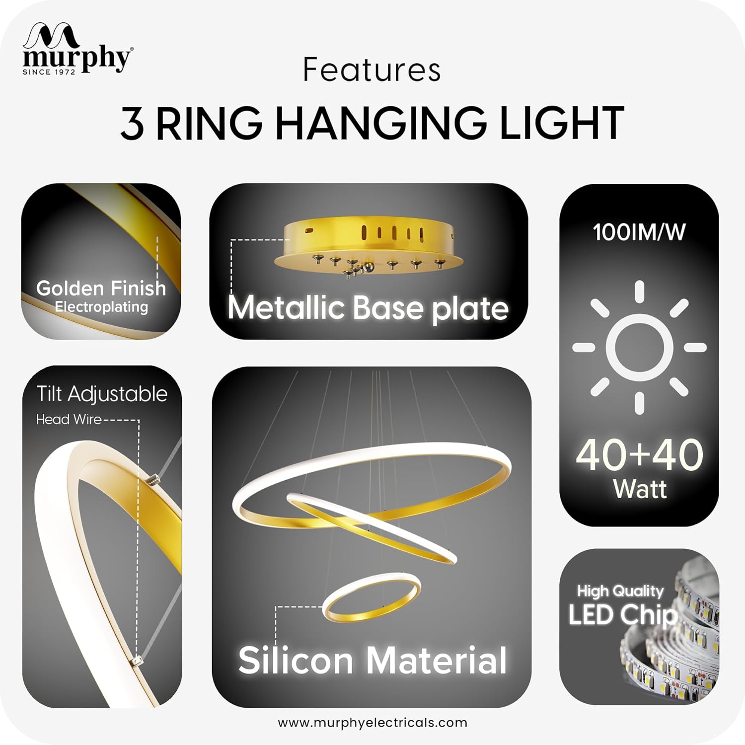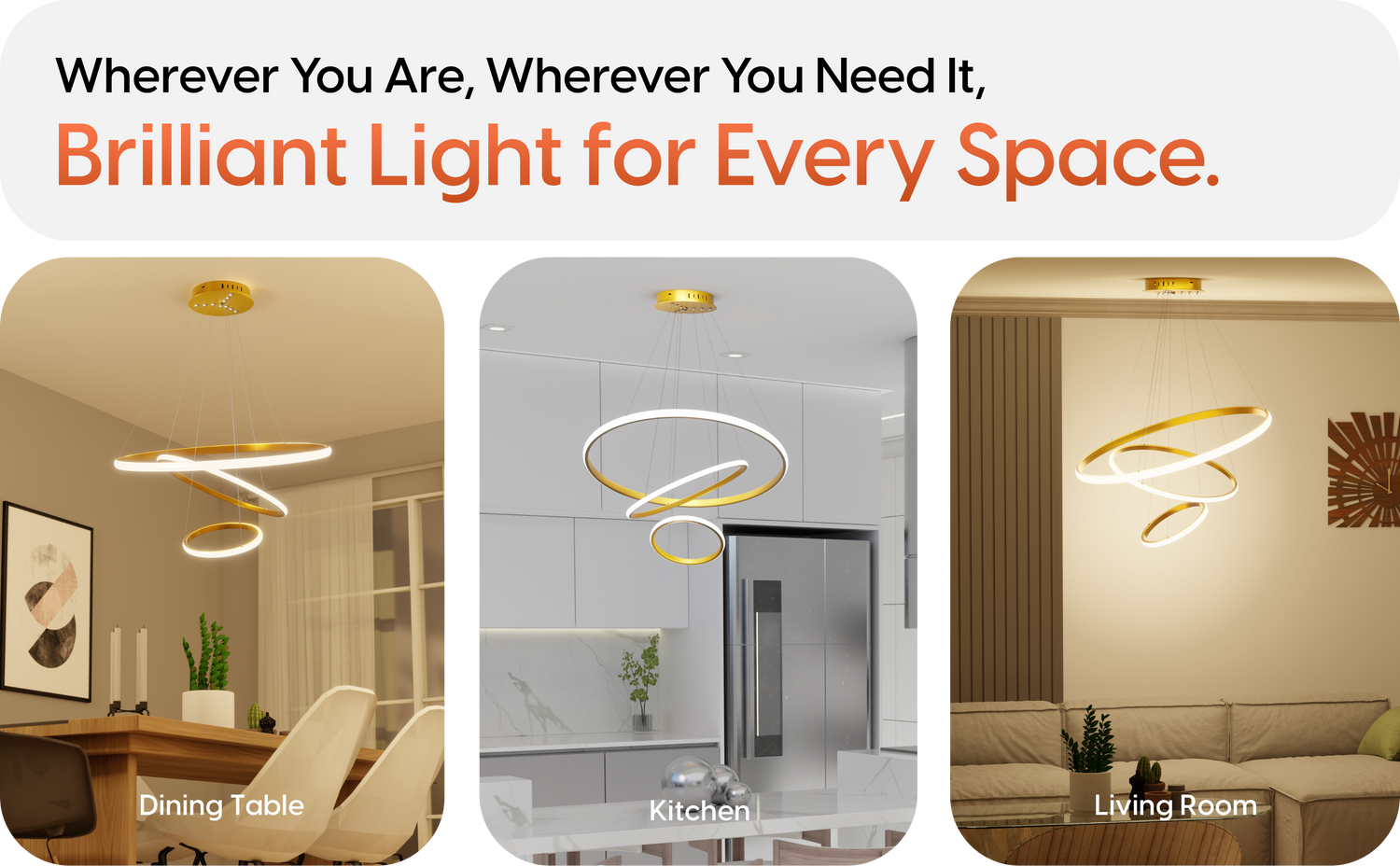 • Elegant Modern Design: Featuring a premium 3-ring golden chandelier design perfect for contemporary interiors like living rooms, dining spaces, and entryways.