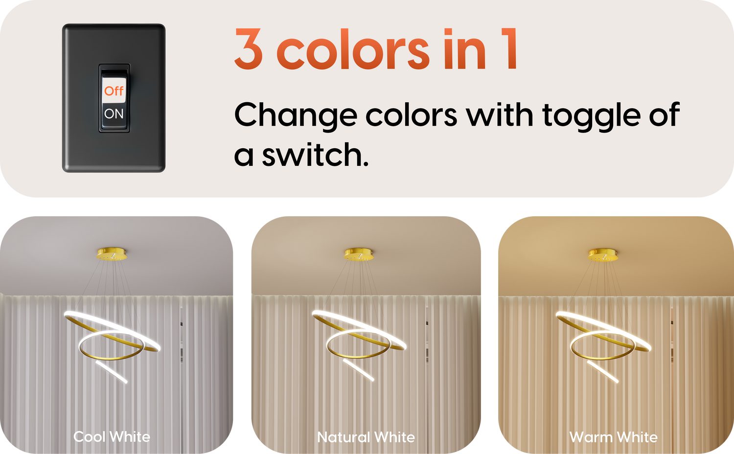 • Adjustable Color Modes: Toggle between warm white, cool white, and natural white lighting with a single switch—customize your ambiance.
