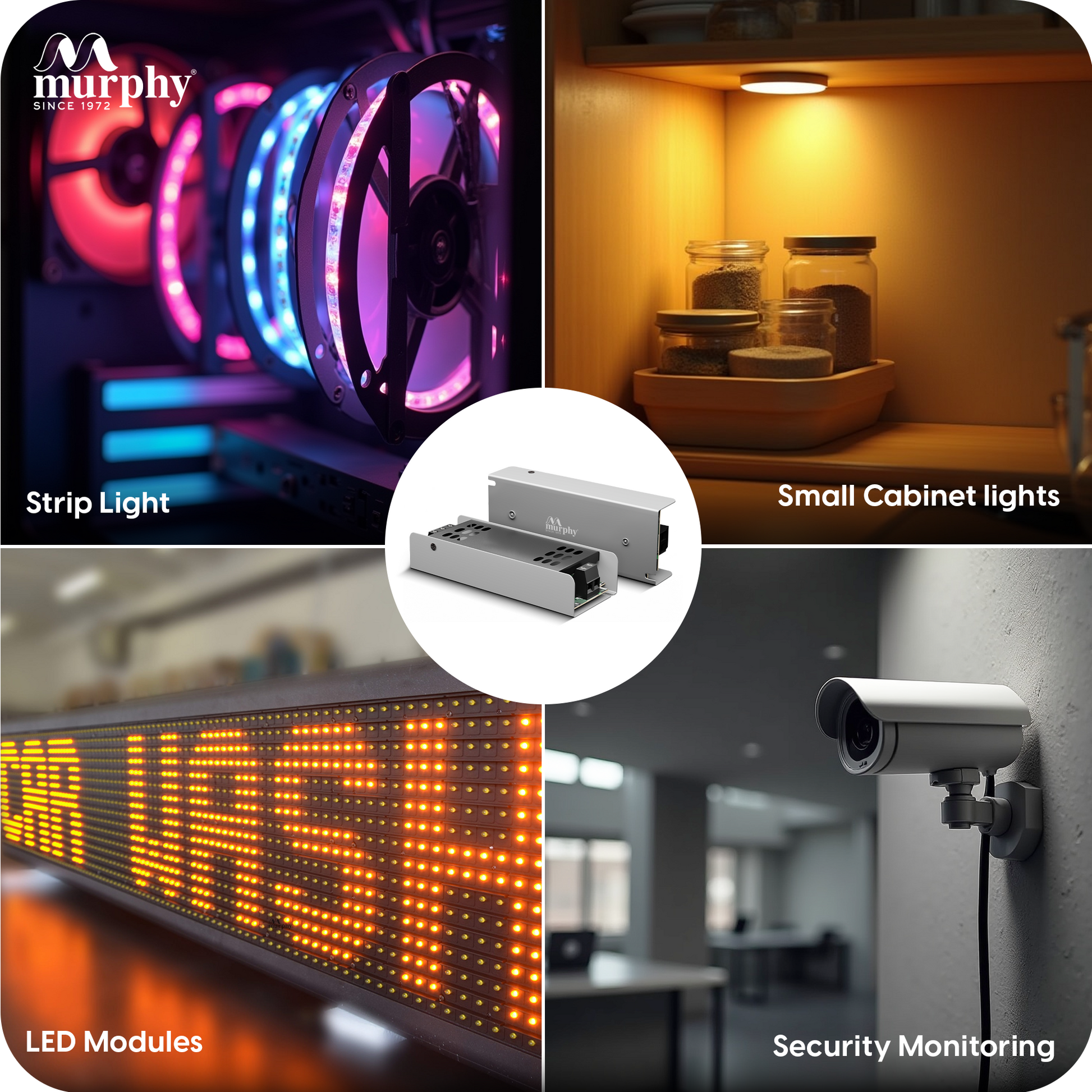 Murphy 3A 12V DC LED Driver (SMPS) | Constant Voltage Power Supply for Indoor LED Strip Lights | Aluminium Body | BIS Approved | (1-Year Warranty)