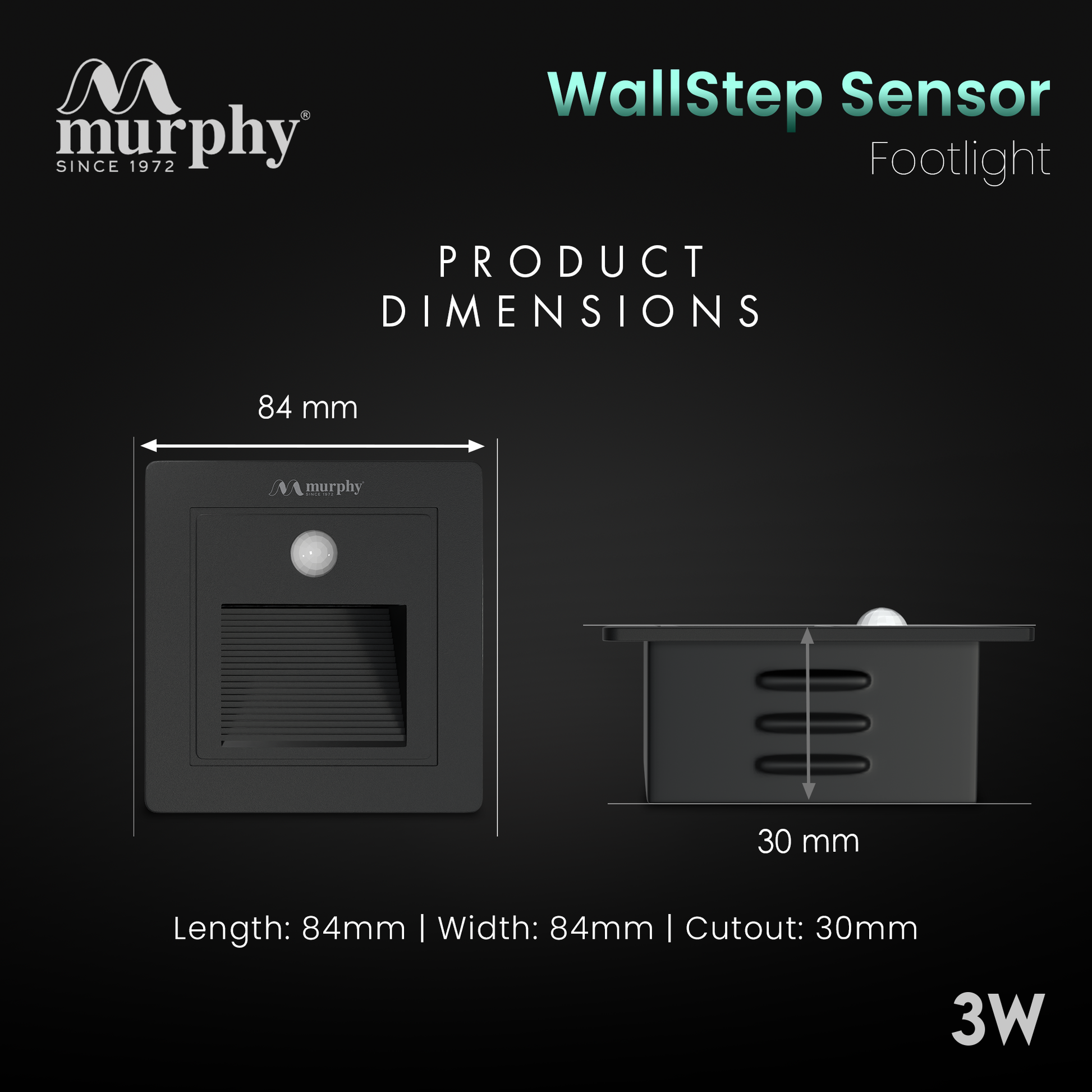 Murphy 3W LED Foot Wall Light With Sensor - RECESS