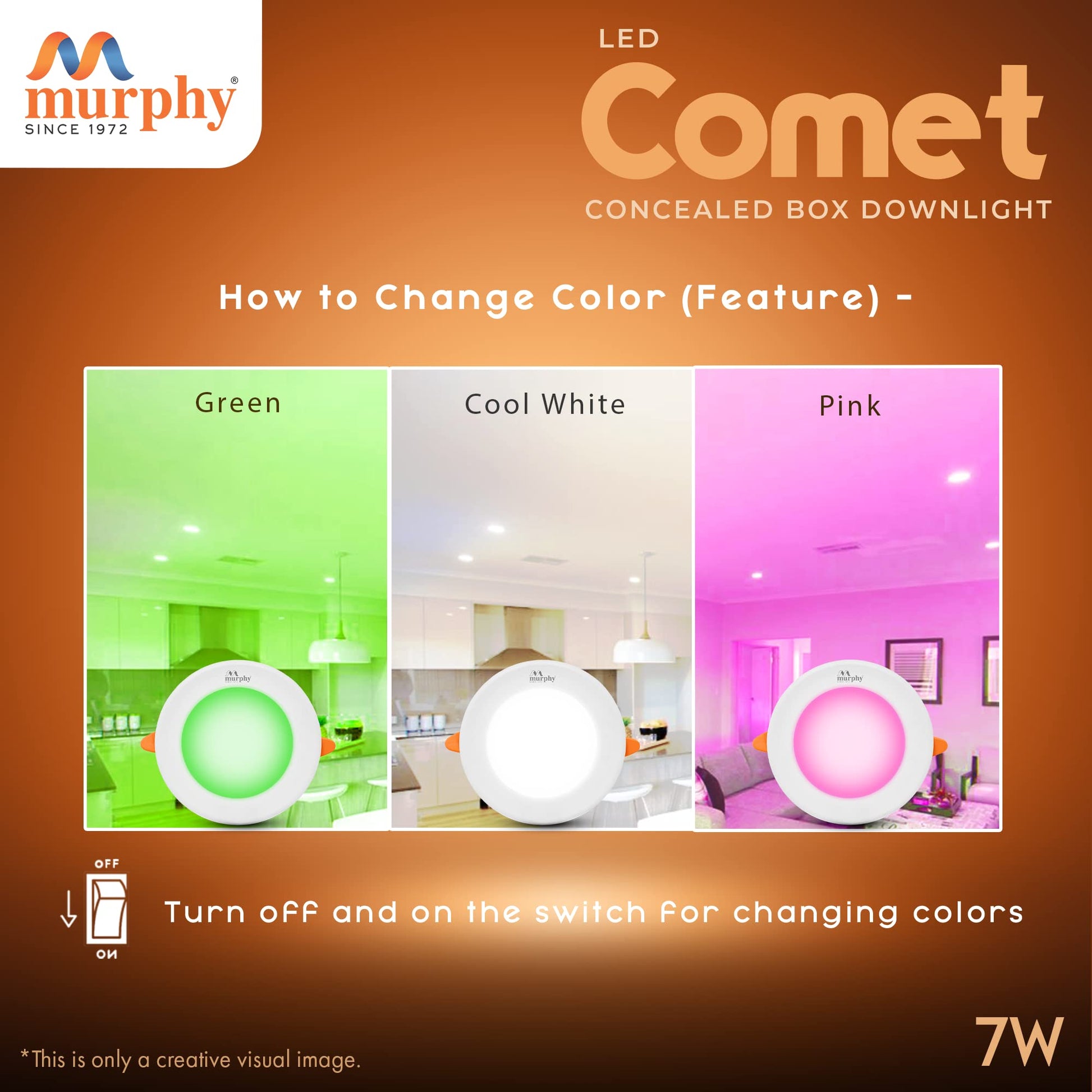Murphy 7W Comet LED 3-IN-1 Color Changing Down Light : Cool White+ Green+ Pink