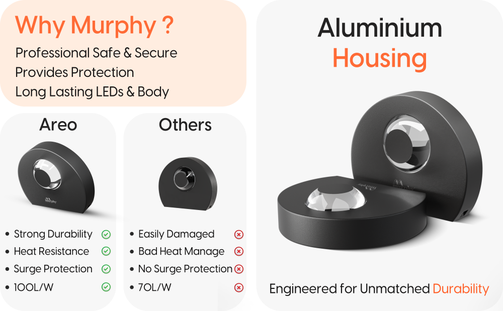 Murphy Areo 1-Way Waterproof LED Wall Light – Warm White, Aluminum Body, 2-Year Warranty, Indoor & Outdoor