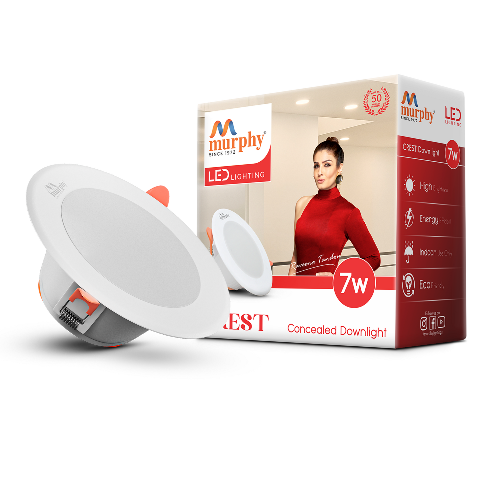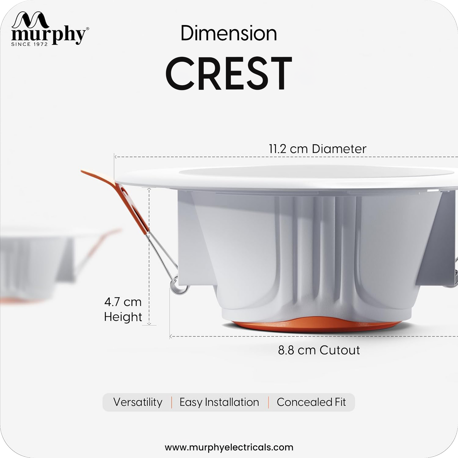 Murphy Crest Premium 7W LED Concealed Down Light | Cool White | Slim Modern False Ceiling Lighting | Suitable for 3-Inch Cutout