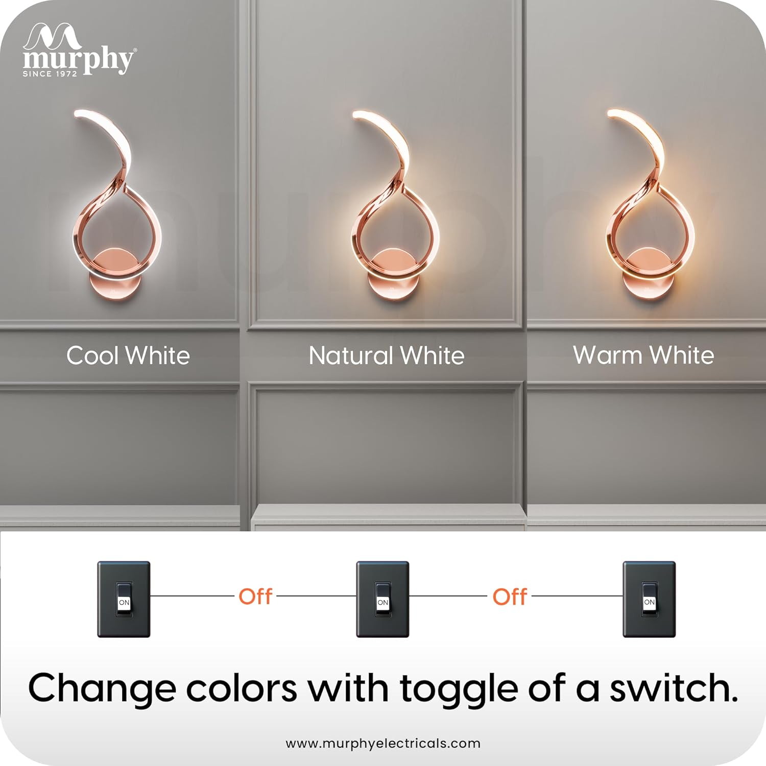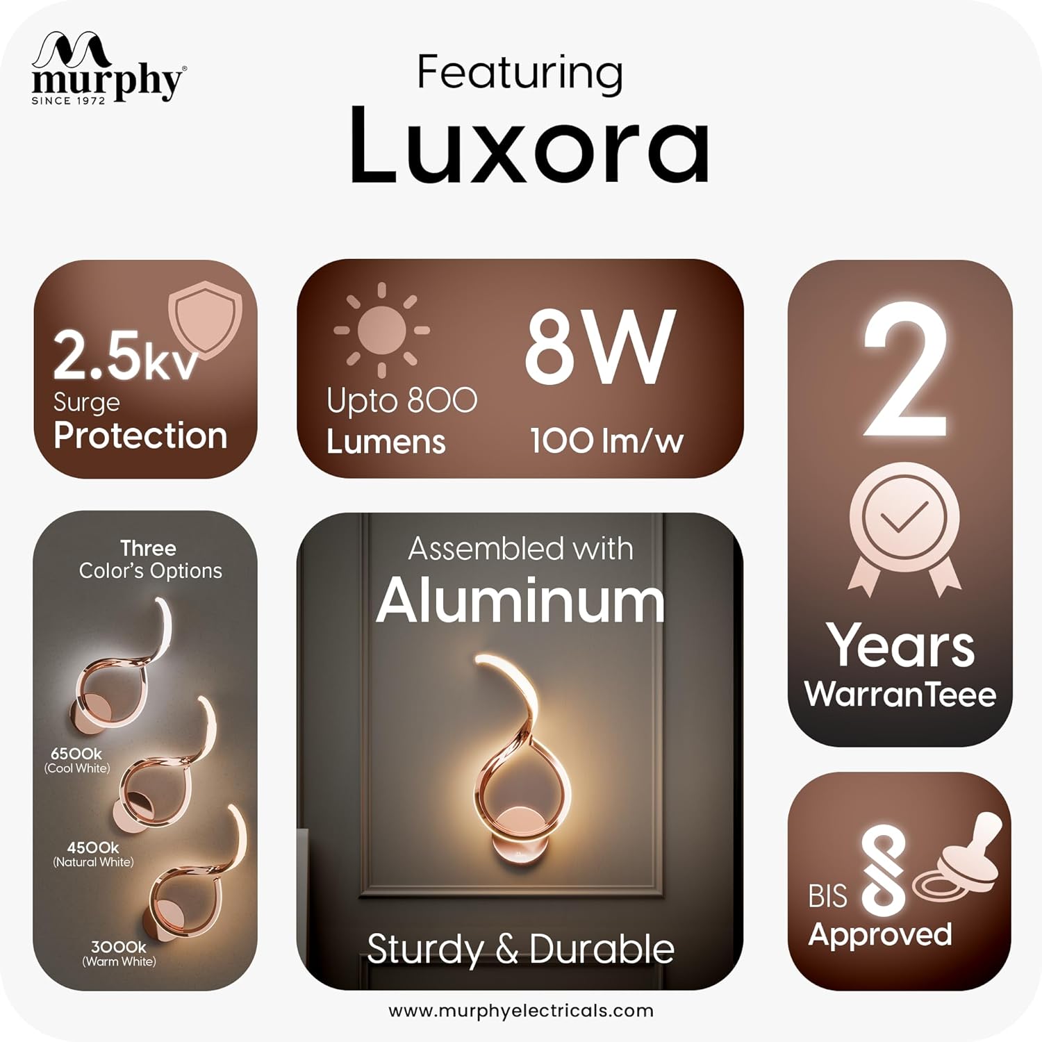 Murphy Luxora Elegant LED Wall Lamp for Home – 2 Years Warranty – Modern Aluminium Light with 3 Color Modes (Rose Gold)