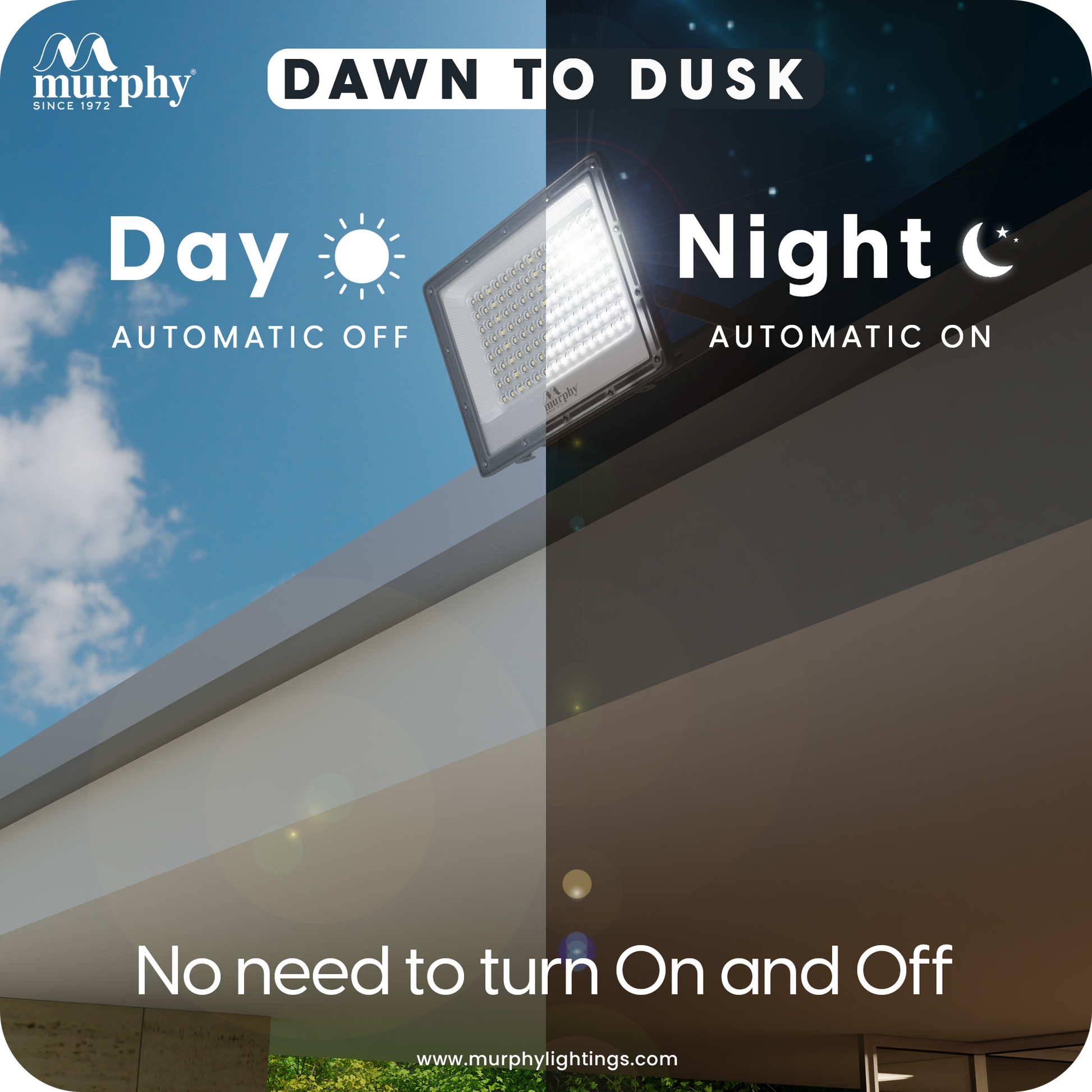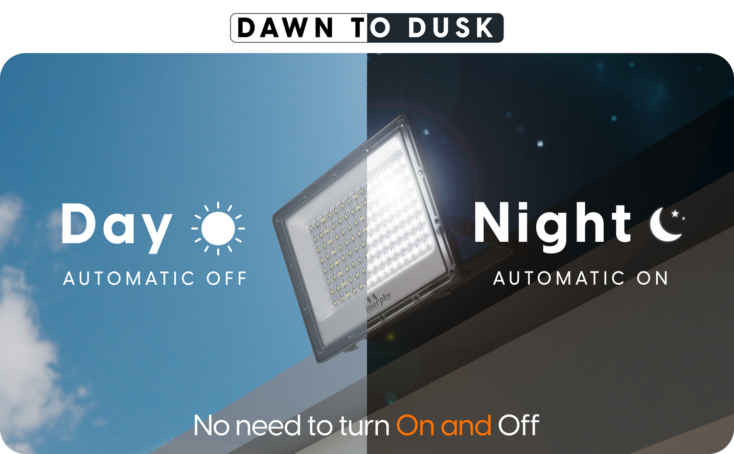 Built-in smart photocell automatically turns the light ON at dusk and OFF at dawn — ensuring convenience and energy savings.