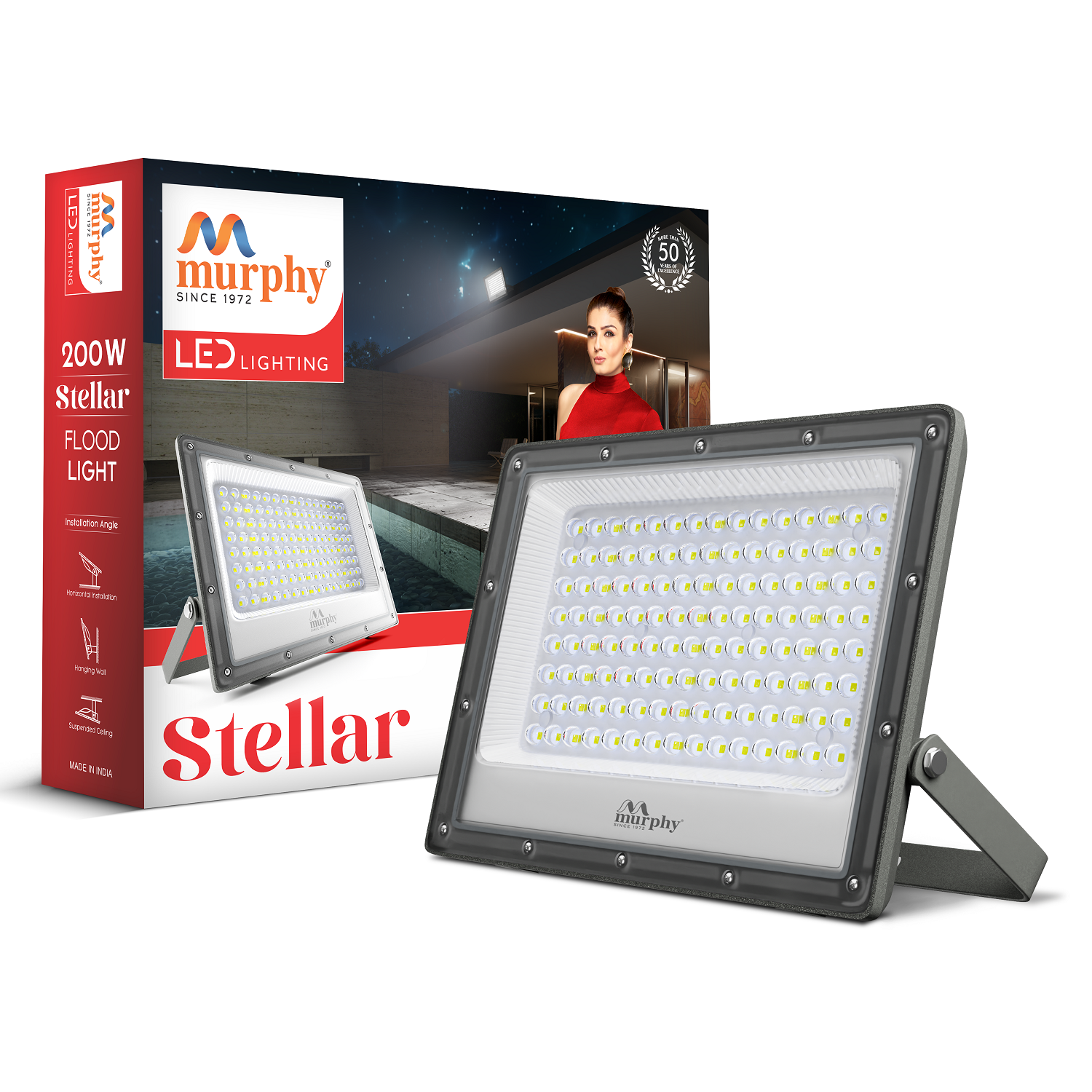 Murphy Stellar 200W LED Flood Light | Ultra-Bright 6500K Cool White | IP66 Waterproof & Surge Protected | High Lumen Outdoor Security Light for Factory, Sports Ground