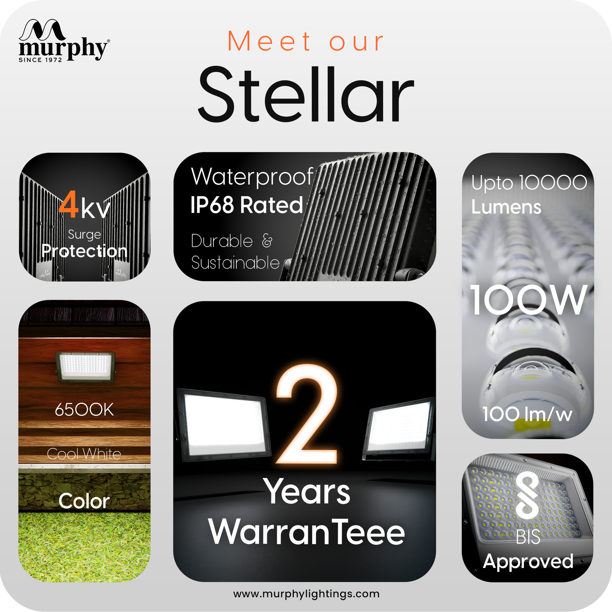Murphy Steller 100W Led Waterproof with Auto On/Off Day Night Light Sensor Flood Light (Cool White, BIS Approved)